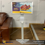 PEDESTAL SANITARIO METALICO BASE TRIANGULAR + PORTA GRAFICA MARCO CLIP FORMATO A4 (21*29.7 CMS)