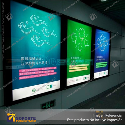 Las cajas de luz se visualizan a mediana distancia (3 a 15mts aprox.) y el tamaño de la gráfica permite desarrollar diversos contenidos. Se usan frecuentemente en frontales de locales comerciales, fachadas en puntos de venta directo, tótems publicitario, retail, entre otros.
